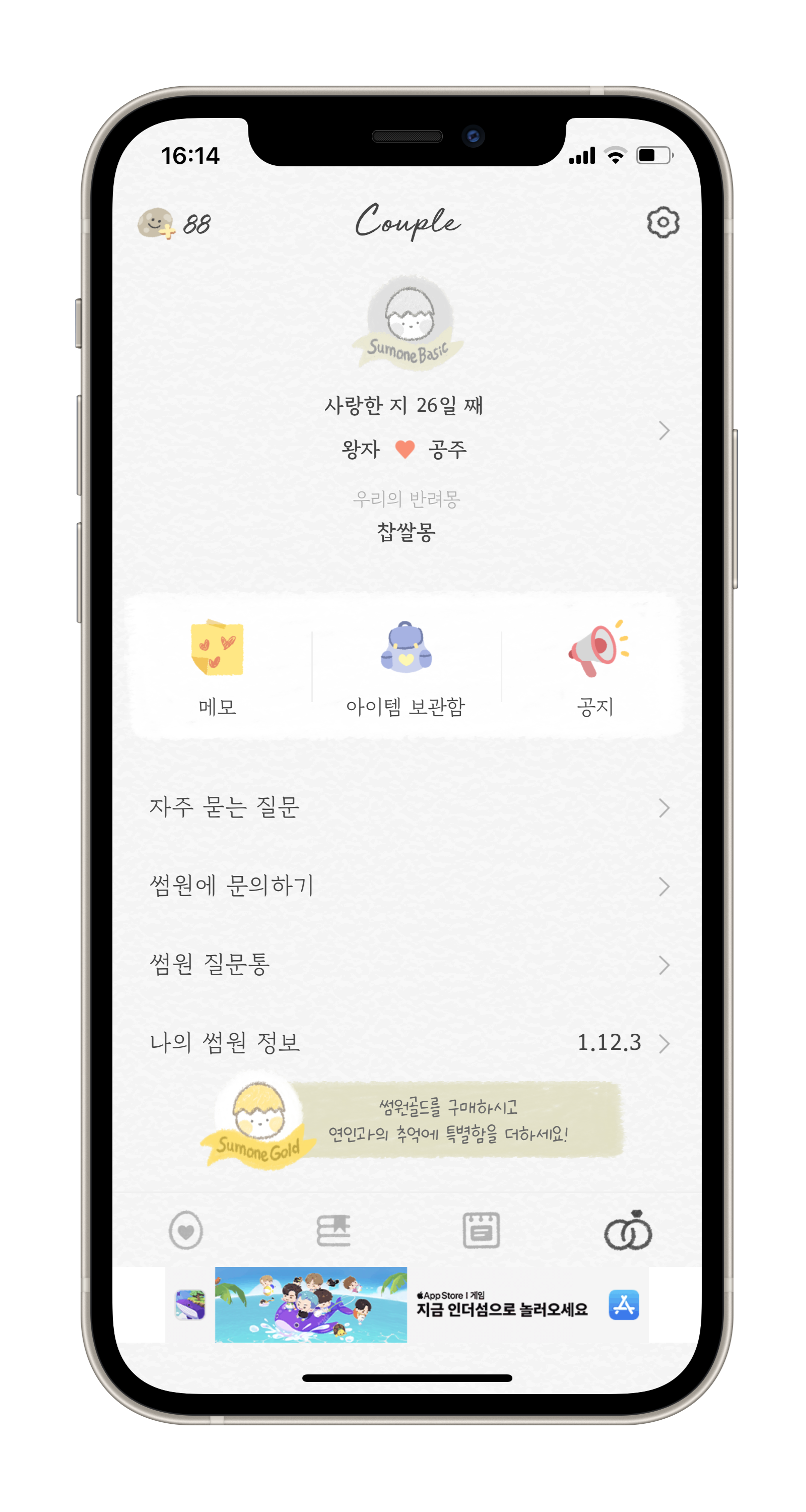 커플들 사이에서 유행하는 썸원 이용하고 계신가요? 썸원은 커플 두 사람에게 동일한 질문이 던져져 서로의 답변을 확인할 수 있는 어플이에요.